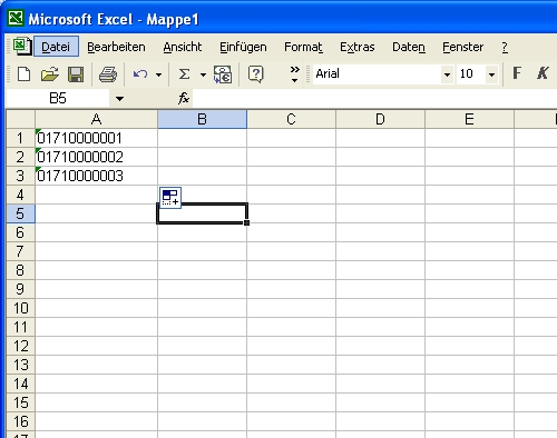 | Nun können Sie in der soeben formatierten Spalte Ihre Handynummern eingeben (falls nicht schon geschehen). Kontrollieren Sie bitte, ob die Handynummern richtig und vollständig sind. |